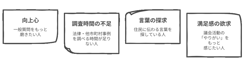 - 一般質問の構成がより論理的に、速く組み立てられる