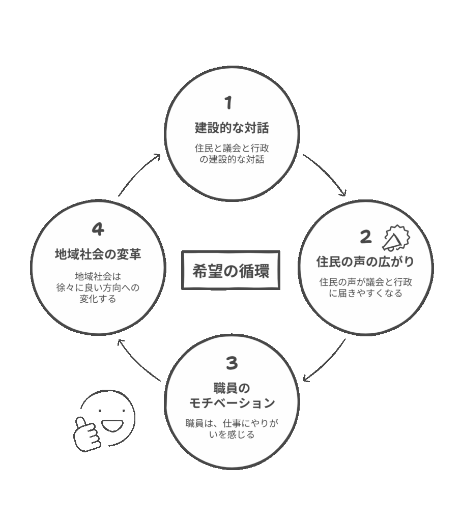 議員は、住民や行政と一緒に「地域を良くし、未来をつくる!」ことを使命に議員活動を実践していく方々です。